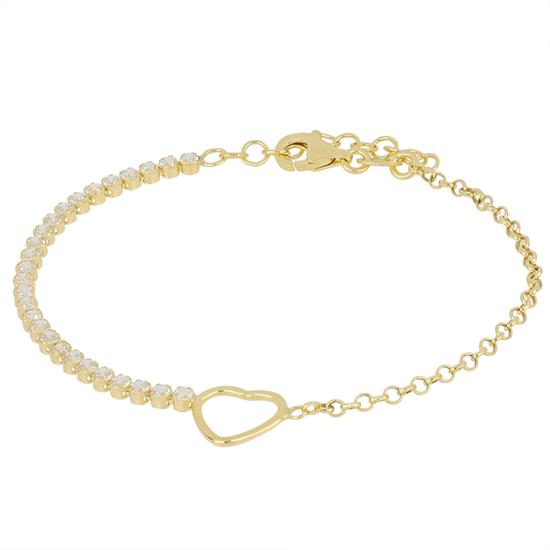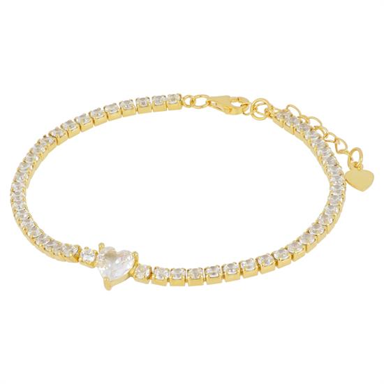 Bracciale tennis Gold con cuore centrale - Argento 925