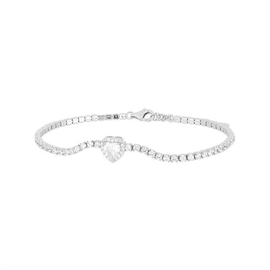 Bracciale tennis con cuore centrale - Argento 925
