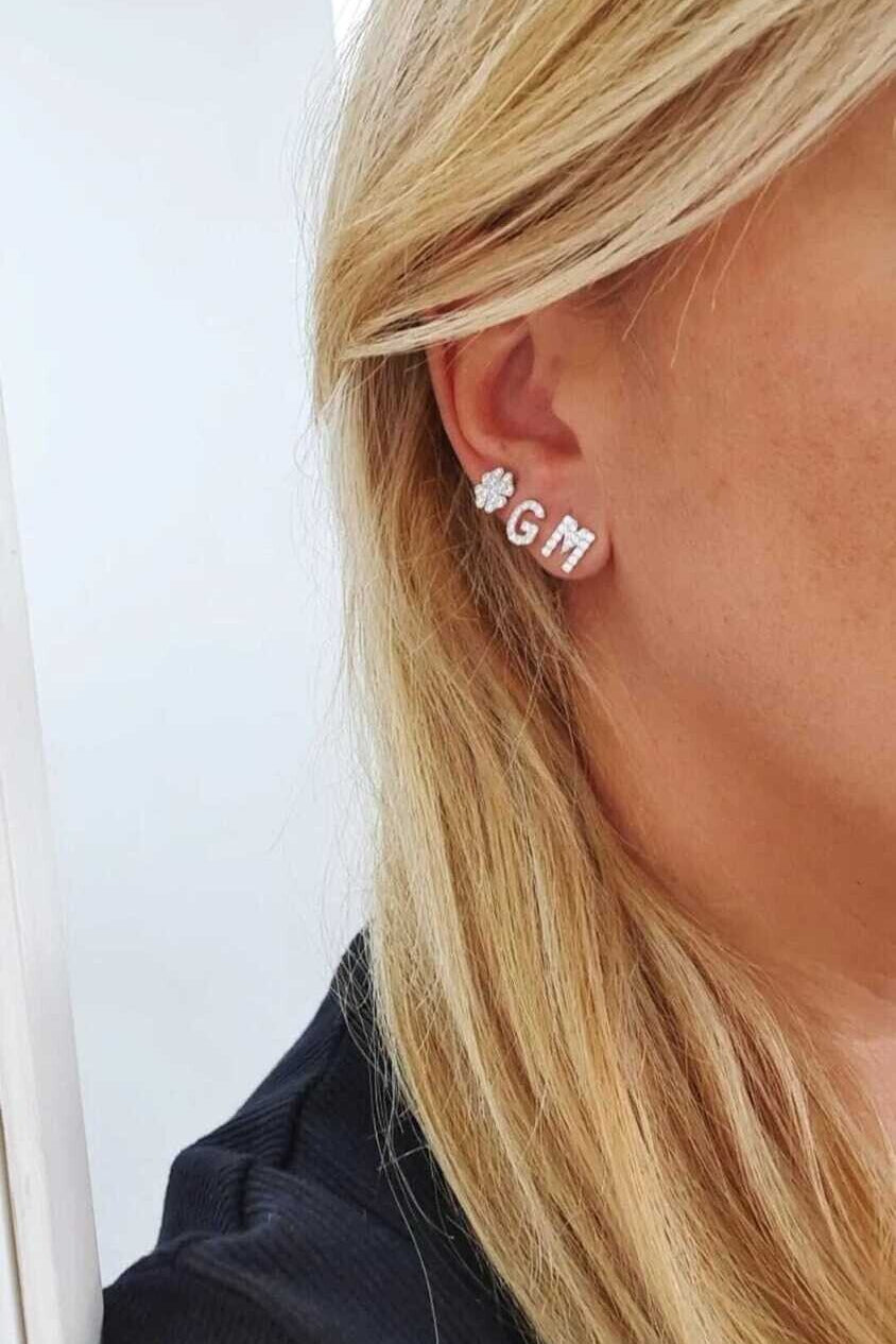 Mono orecchino con lettera zirconata